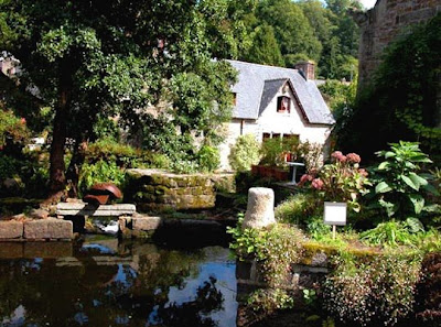 In 2008, it was recommended by people we chatted with in a restaurant that we visit the small town of Pont-Aven. It turned out to be excellent advice. We walked through the town for some distance long the river Aven, and, before returning to our car, stopped for some refreshing beer at a pub with sidewalk tables. The most outstanding feature of the town, apart from the river and the mill, were the beautiful flowers that seemed to be everywhere. Paul Gauguin, the famous post-impressionist, painted Pont Aven while he lived here in 1888.Friday, September 18, 2009